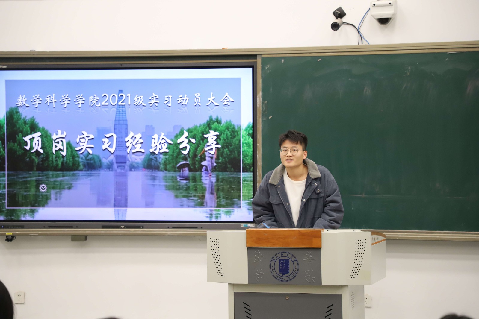 往届优秀实习生代表结合自己的实习经历和感受进行了分享,他们鼓励学弟学妹薪火相传,以实际行动奉献基础教育,实现“躬耕教坛、强国有我”从教理想。
